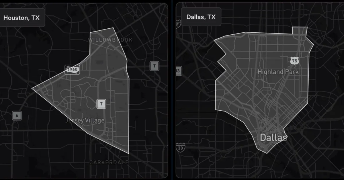 The geofence for Houston spans about 25 square miles, while the Dallas zone is primarily located in Highland Park. Tesla’s Austin geofence, by comparison, has expanded to approximately 245 square miles since its initial launch nearly a year ago. Much of this expansion took time, starting from just a 20-square-mile area.
